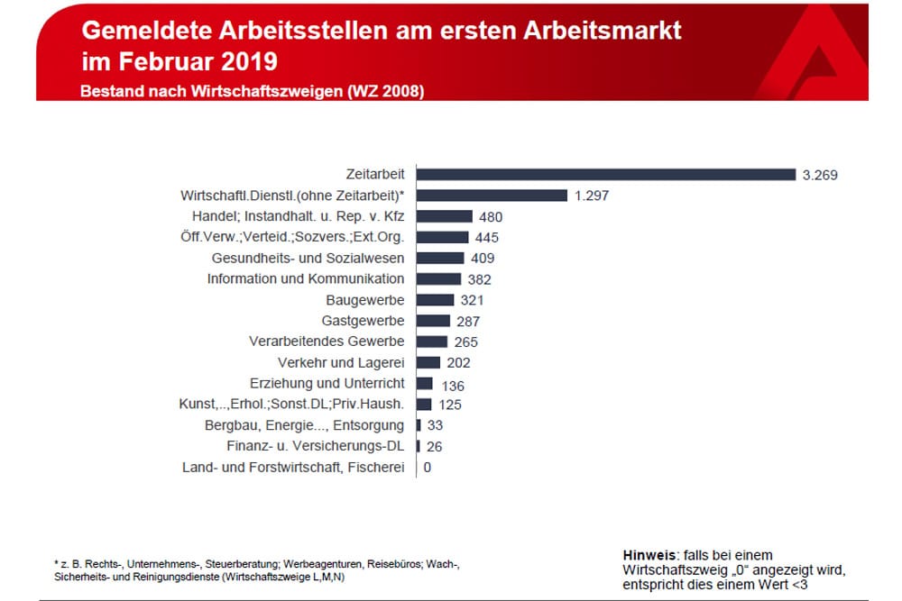 Stellenangebote nach Wirtschaftszweigen. Grafik: Arbeitsagentur Leipzig