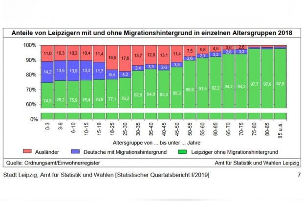 2011 lag die Zahl der Einwohner mit Migrationshintergrund übrigens nur halb so hoch, bei 44.409. Menschen mit einem Geburtsort im Ausland machten in der Zeit ungefähr die Hälfte des Leipziger Bevölkerungswachstums aus. Und das waren nicht nur Menschen aus Bürgerkriegsländern, zu denen man vielleicht noch die Iraker (2.816) oder Afghanen (2.171) zählen muss.
