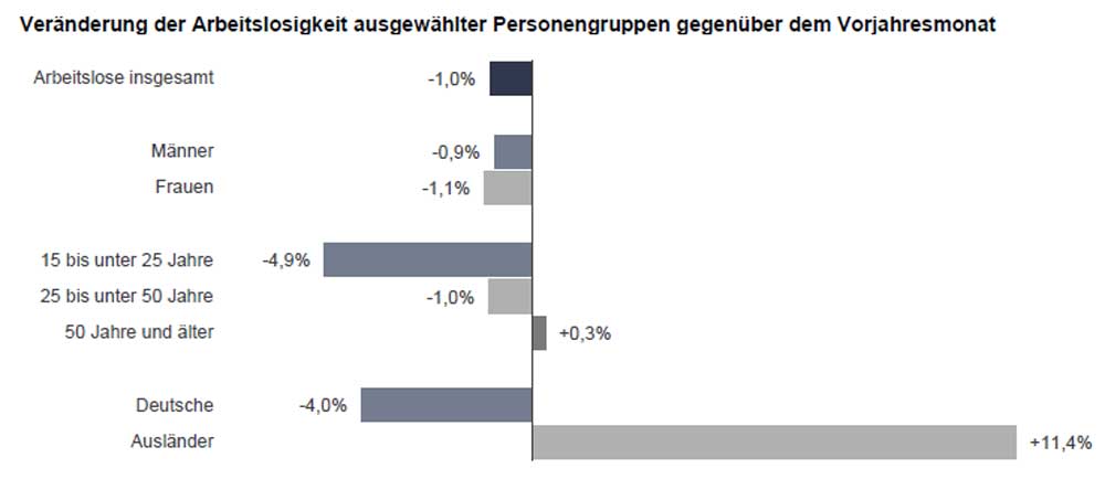 Das sind sehr kleine Zahlen – verglichen mit 2016 und 2017. Da ging die Zahl der offiziell gezählten Arbeitslosen übers Jahr um rund 2.000 zurück.