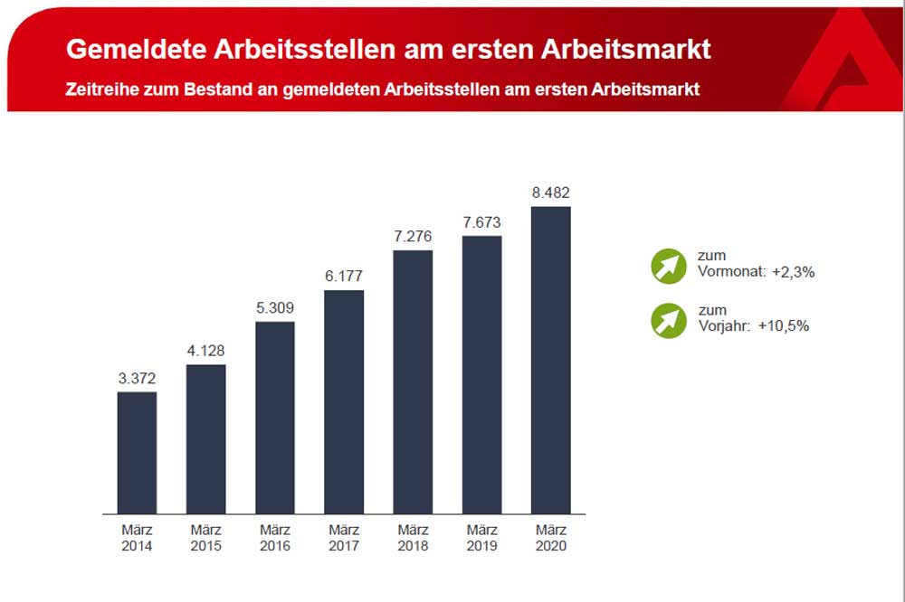 Dem stehen 2.205, 16 mehr als im März 2019, Bewerberinnen und Bewerber um einen Ausbildungsplatz gegenüber. Von diesen suchen aktuell 1.402 noch nach einer Ausbildungsstelle.