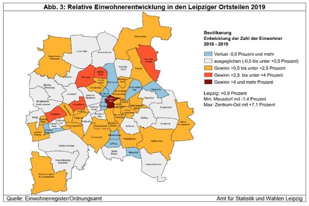 Im Ergebnis ist der Wohnungsmarkt in Leipzig zwar dicht, das Mietniveau aber im Durchschnitt weiter niedrig. Andrea Schultz zeigt in ihrem Beitrag „Erste aktuelle Trends zur Einwohnerentwicklung“ dann auch mit Zahlen untersetzt, was das fürs Bevölkerungswachstum bedeutet, das ja 2019 schon deutlich gebremst war.