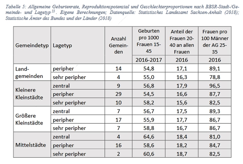 Aber die Sache ist noch brenzliger, denn mit den Abwanderungen sank auch der Anteil der Frauen im gebärfähigen Alter. In den meisten Regionen liegt er unter 20 Prozent. Das heißt: Es sind sowieso schon weniger Frauen da, die Kinder bekommen könnten. Und zur traurigen Wahrheit gehört auch: Sachsen-Anhalt bietet nach wie vor viel zu wenige attraktive Arbeitsplätze für Frauen. Die jungen Frauen wandern weiterhin ab.