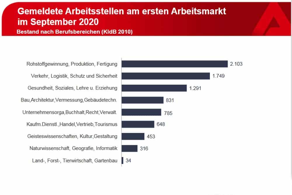 Der Rückgang der Arbeitslosigkeit im Vergleich zum Vormonat August betrug bei den Unter-20-Jährigen 72 (-10,6 Prozent) auf 605 und bei den Unter-25-Jährigen 271 (- 8,6 Prozent) auf 2.864. Zum Vorjahres-September lag der Anstieg bei 33 bzw. 48 Prozent.