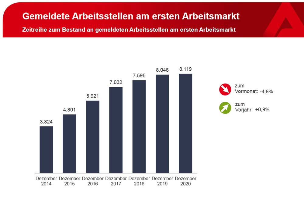 So zählte die Statistik im Dezember 2.164 Jugendliche unter 25 Jahren, das waren 552 Personen mehr als im Dezember 2019. Die Zahl der älteren Arbeitslosen ab 50 Jahren lag im Dezember bei 6.673 Personen. Das waren 1.287 mehr als vor einem Jahr.