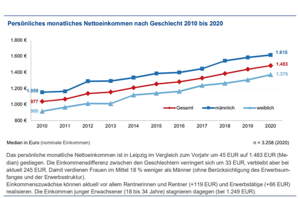 Selbst im Corona-Jahr 2020 sind die Einkommen der Leipziger/-innen gestiegen. So jedenfalls kann man es in der Kurzauswertung der Kommunalen Bürgerumfrage lesen. Und das trotz Krise? Der genauere Blick in die Zahlen zeigt recht deutlich, wie sich auch die Leipziger Gesellschaft zunehmend entkoppelt. „Einkommenszuwächse können aktuell vor allem Rentnerinnen und Rentner (+119 EUR) und Erwerbstätige (+66 EUR) realisieren“, stellen Leipzigs Statistiker/-innen trocken fest.