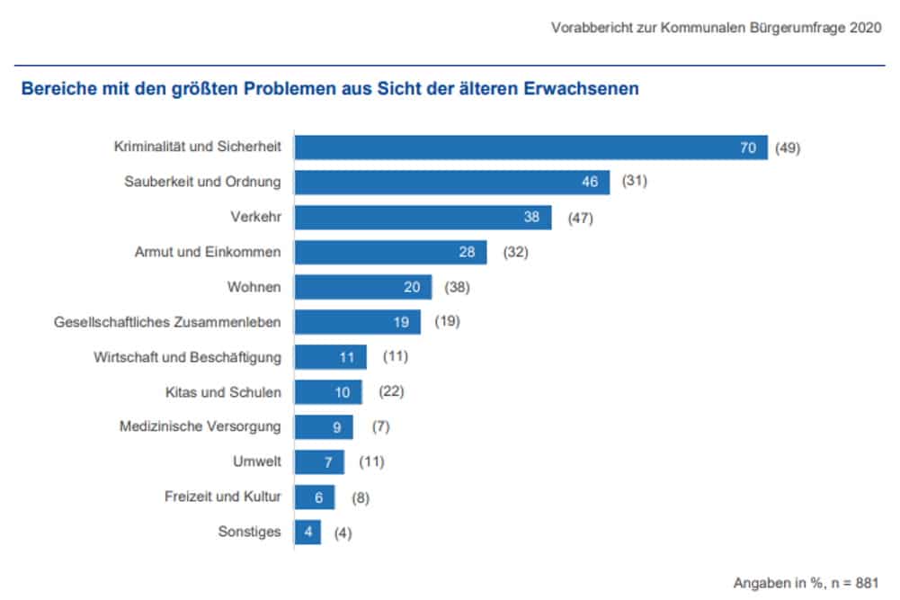Aber dass das Thema Sicherheit seit Jahr und Tag immer wieder als „größtes Problem“ gehandelt wird, erzählt eine Menge über das Übergewicht der älteren Leipziger/-innen auch in der Bürgerumfrage.