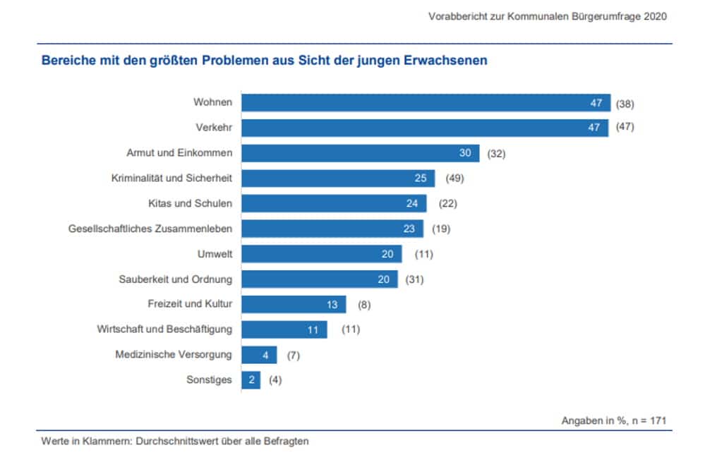 So, wie es dasteht, stimmt es natürlich nicht. Was schon beim Stichwort „Verkehr“ losgeht, denn das sehen Autofahrer, ÖPNV-Nutzer, Radfahrer und Fußgänger alle völlig anders. Bevor wir uns damit beschäftigen, warten wir lieber auf die komplette Auswertung der Bürgerumfrage.