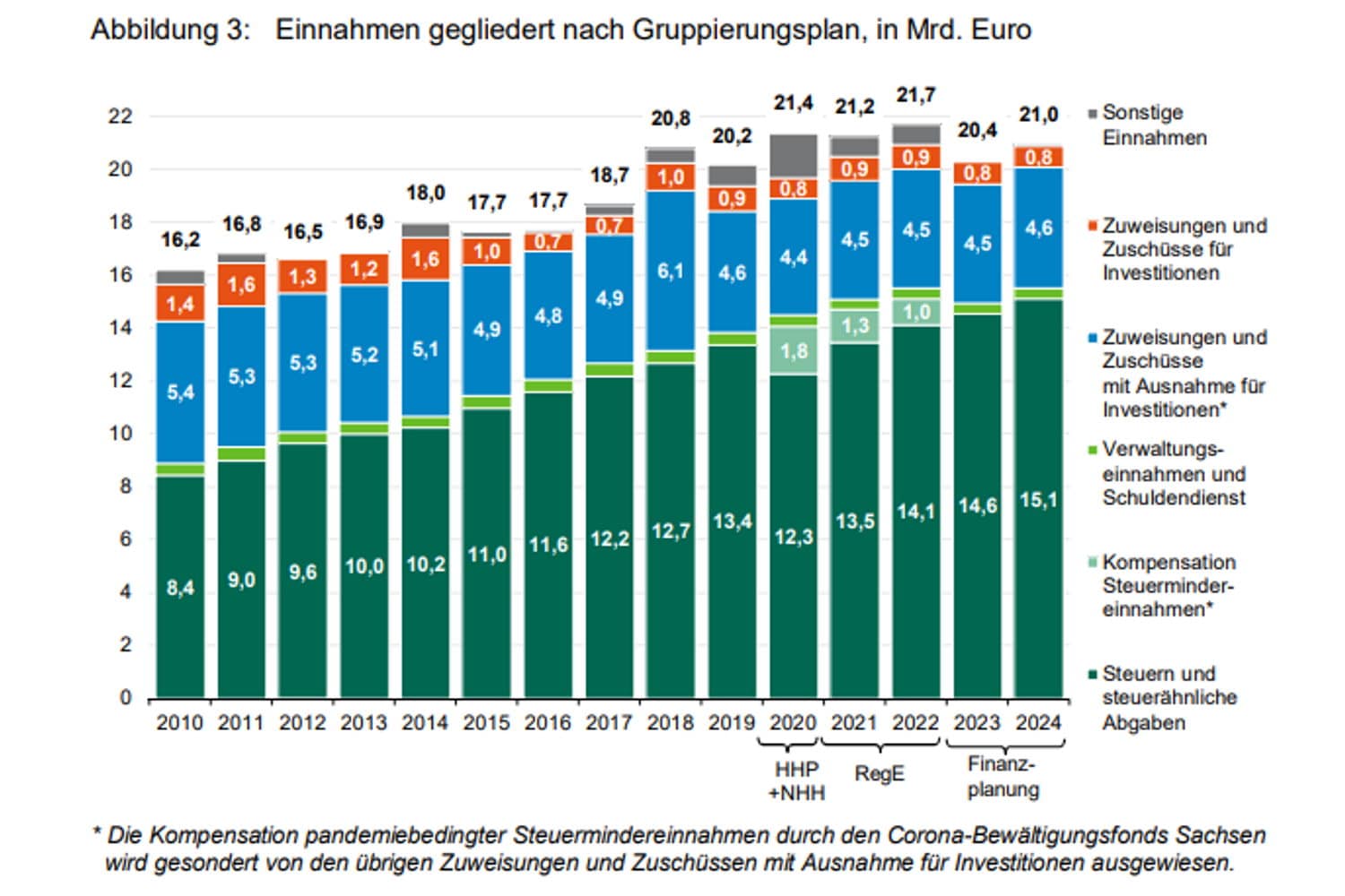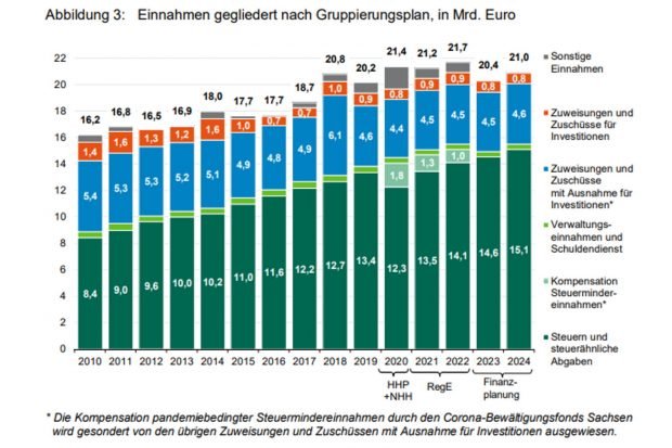 Mit großen Fragezeichen, denn der Doppelhaushalt ist ja nicht mit Steuerschätzungen geplant, sondern mit ganz konkreten Zahlen zu Steuereinnahmen und steuerinduzierten Einnahmen. Und da hat Sachsen 2021 nun einmal nur mit 15,5 Milliarden Euro geplant. Bei den Steuereinnahmen ist Sachsen also – trotz Corona – auf Kurs.