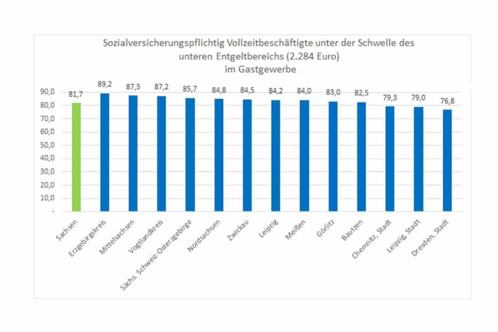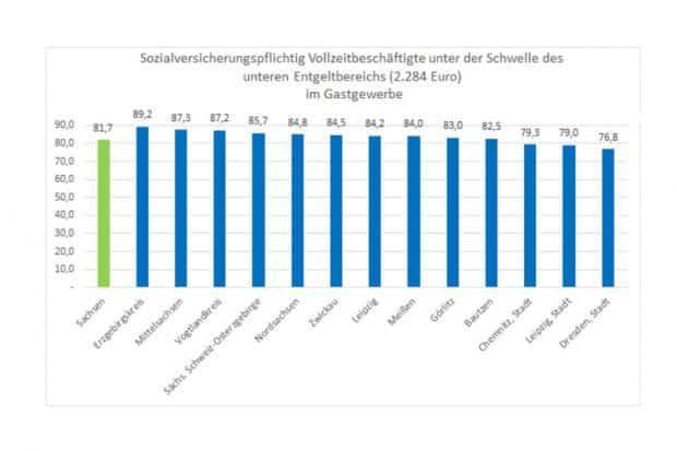 „Im Gastgewerbe und bei der Leiharbeit sind geringe Monatsentgelte eher die Regel, als die Ausnahme. In Sachsen arbeiten fast 82 % der sozialversicherungspflichtig Vollzeitbeschäftigten im Gastgewerbe im Niedriglohnbereich. Negativer Spitzenreiter ist auch hier der Erzgebirgskreis mit fast 90 %. Es ist skandalös, dass DEHOGA Sachsen nicht bereit war, mit der Gewerkschaft Nahrung-Genuss-Gaststätten einen ordentlichen Tarifabschluss zu vereinbaren“, kritisiert Schlimbach den Branchenverband des Gastgewerbes.