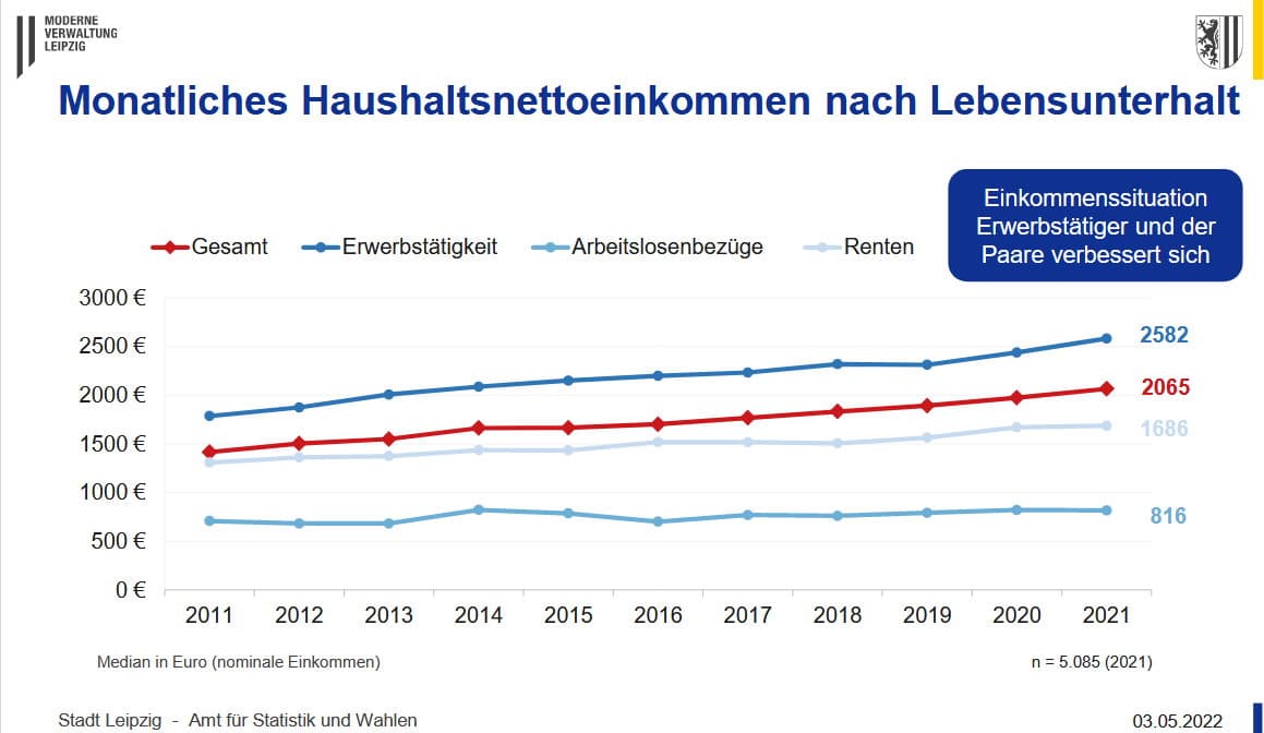 Was verblüfft. Denn gleichzeitig zeigt die aktuelle Kurzauswertung der „Bürgerumfrage 2021“, dass für viele Leipziger auch die Einkommen weiter deutlich gestiegen sind. Und zwar deutlicher noch als in den Vorjahren.
