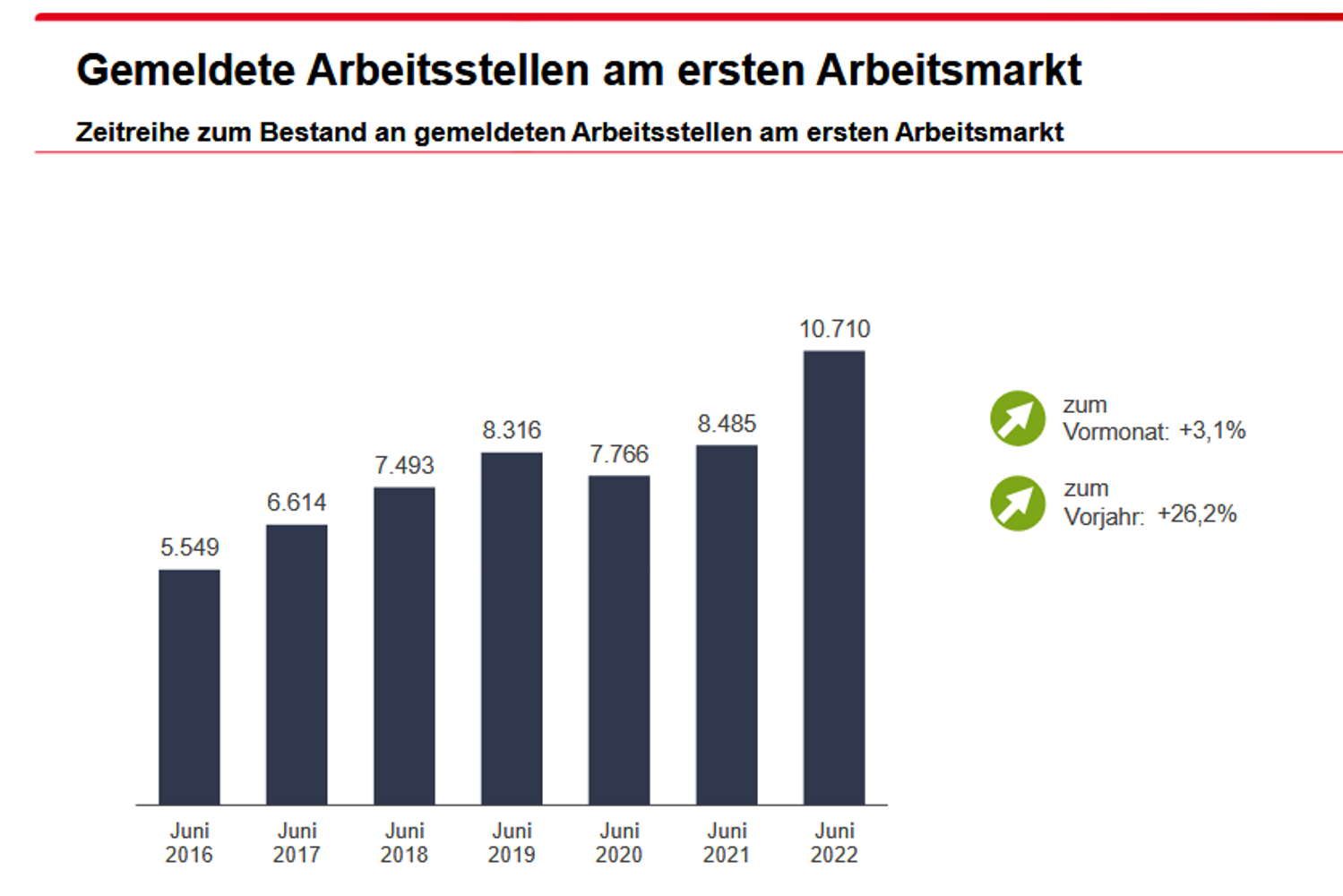 Zudem wurden im Juni 1.409 Arbeitsstellen abgemeldet, 17 Stellen bzw. 1,2 Prozent weniger als im Vorjahr. Von Januar bis Juni gab es insgesamt 8.973 Stellenabgänge, im Vergleich zum Vorjahreszeitraum ist das ein Zuwachs von 659 oder 7,9 Prozent.