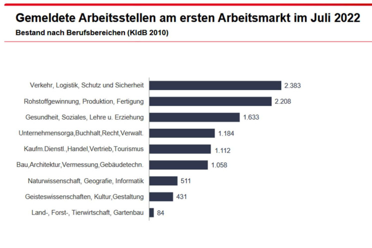 Dem stehen derzeit 2.428 Bewerberinnen und Bewerber für einen Ausbildungsplatz gegenüber. Dies entspricht einem Rückgang von 198 Personen bzw. -7,5 Prozent im Vergleich zum Juli 2021.