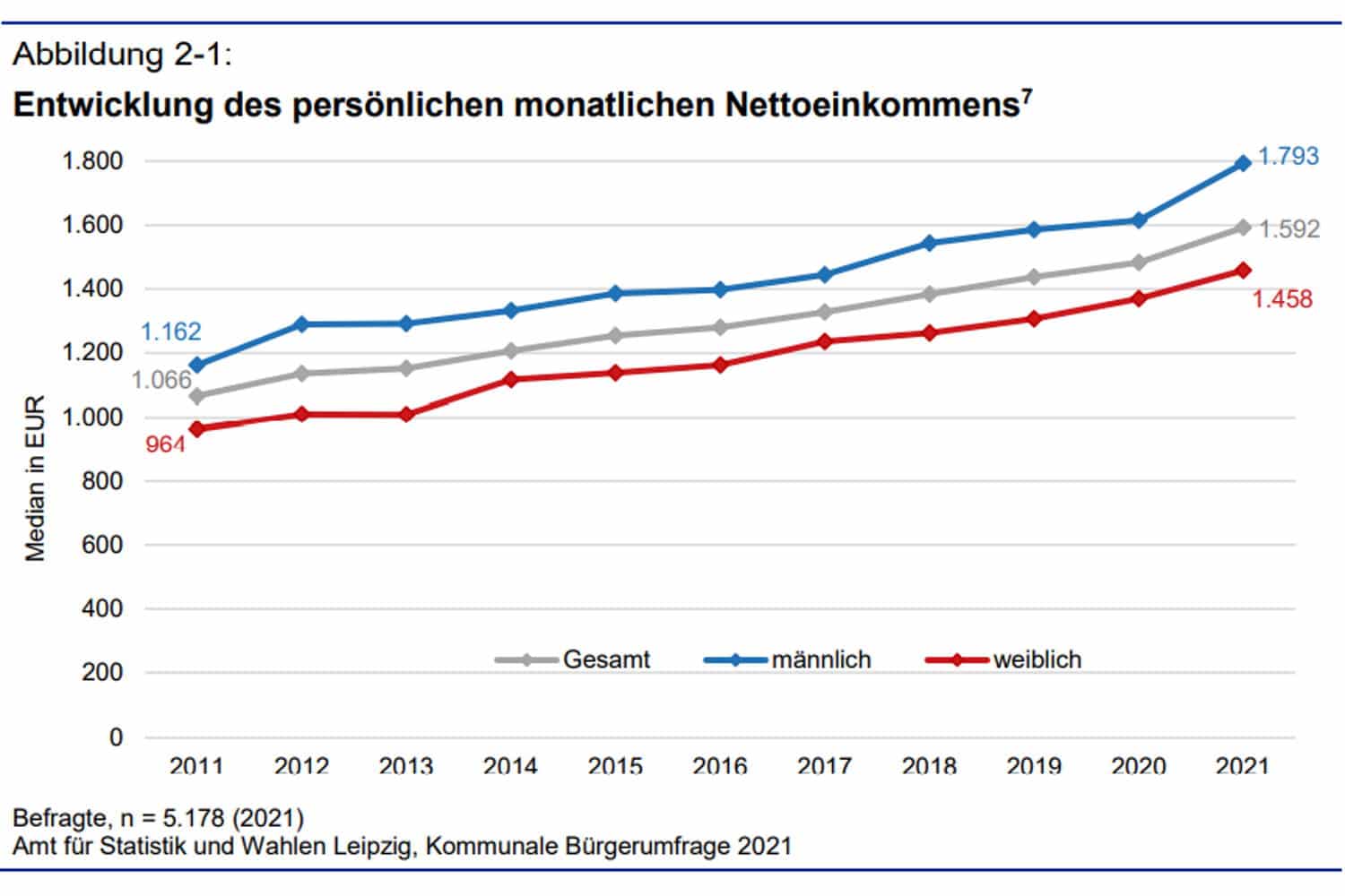 Während in den 2021 deutlich gestiegenen Einkommen bei den Männern nicht nur Lohnzuwächse stecken, sondern auch neue, gut bezahlte Arbeitsplätze, die in Leipzig auch in der Corona-Zeit entstanden sind und besetzt wurden.