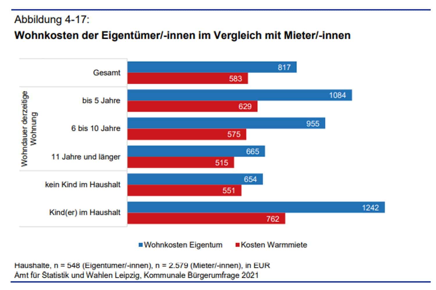 „Im Vergleich zu den Leipziger Miethaushalten müssen Eigentümer/-innen deutlich mehr Geld im Monat für die Wohnkosten aufbringen“, heißt es im Bericht zur Bürgerumfrage.