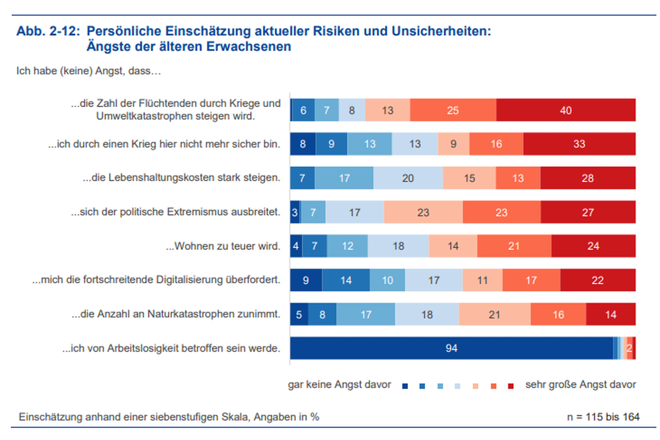 Das wird schon deutlich, wenn man Ängste benennt wie die, dass „die Zahl der Flüchtlinge durch Kriege und Umweltkatastrophen steigen wird“ oder dass „sich der politische Extremismus ausbreitet“.