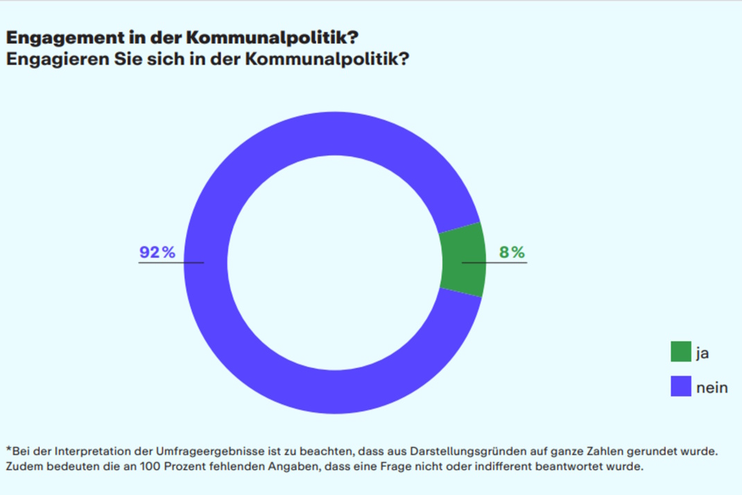 Und sich auch nicht engagieren. Was man ja nicht nur als gewählter Mandatsträger kann, sondern auch im Kreisverband einer Partei, in einer Bürgerinitiative oder einem Verein. Es gibt genug Angebote. Aber sie werden nicht wahrgenommen bzw. nur von einer kleinen engagierten Minderheit: 8 Prozent.