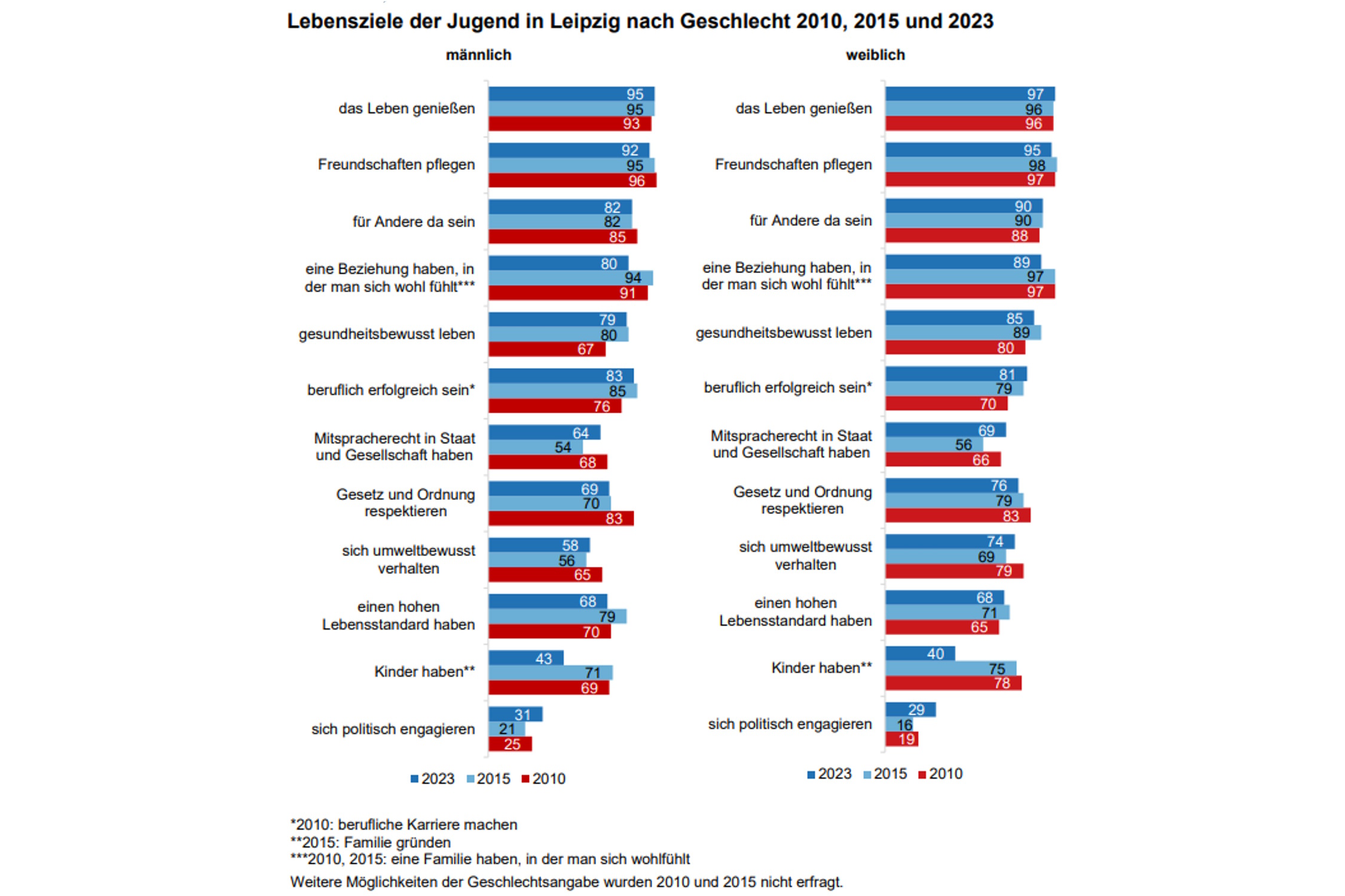 Als Ergebnis der Befragung „Jugend in Leipzig 2023“ hatte schon Jugendbürgermeisterin Vicki Felthaus darauf hingewiesen, dass der Wunsch der befragten 12- bis 24-jährigen, einmal Kinder haben zu wollen, in den letzten Jahren regelrecht in den Keller gerauscht ist.