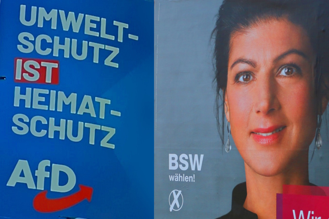 Die AfD und das BSW könnten die großen Gewinner der Landtagswahlen in Sachsen und in Thüringen werden. Die AfD, deren Verbände in beiden Ländern vom Verfassungsschutz als gesichert rechtsextrem eingestuft sind, ist in Umfragen die stärkste Partei, das BSW die drittstärkste. Beide zusammen könnten über eine absolute Mehrheit verfügen und somit – zumindest rein rechnerisch – eine Regierung bilden.