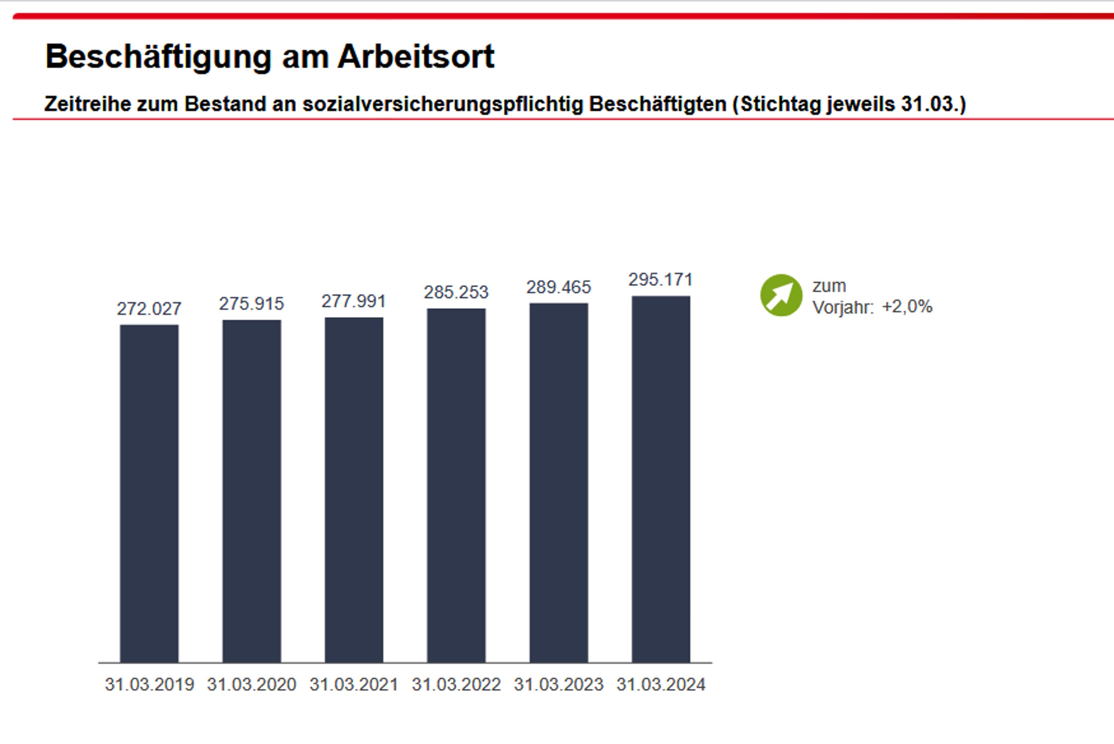 Und um auch hier noch deutlich zu zeigen, dass Leipzig innerhalb dieset Entwicklung eigentlich noch ein Motor ist, der sogar weiterhin immer neue und zwar zeitgerechte Arbeitsplätze schafft, ein Blick auf die Beschäftigtenzahlen in Leipzig, die auch bis zum März – dem aktuellsten ausgewerteten Zeitpunkt – weiter gestiegen sind.