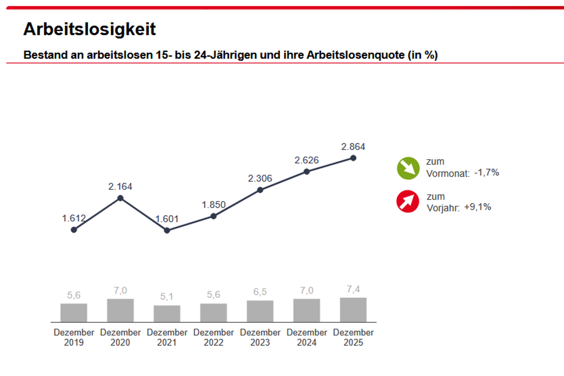 Ein Befund, den auch die Leipziger Zahlen stützen. Denn seit 2022 steigt die Zahl der arbeitslosen 15- bis 24-Jährigen in Leipzig kontinuierlich an. Von damals 1.850 auf nunmehr 2.864, leicht weniger als im November, aber 9,1 % mehr als noch im Dezember 2024. Das heißt nun einmal, dass gerade junge Menschen unter dem Einstellungsstopp in vielen Unternehmen leiden. Und das in einer Zeit, in der immer mehr Branchen tatsächlich von einem demografisch bedingen Fachkräftemangel erfasst werden.