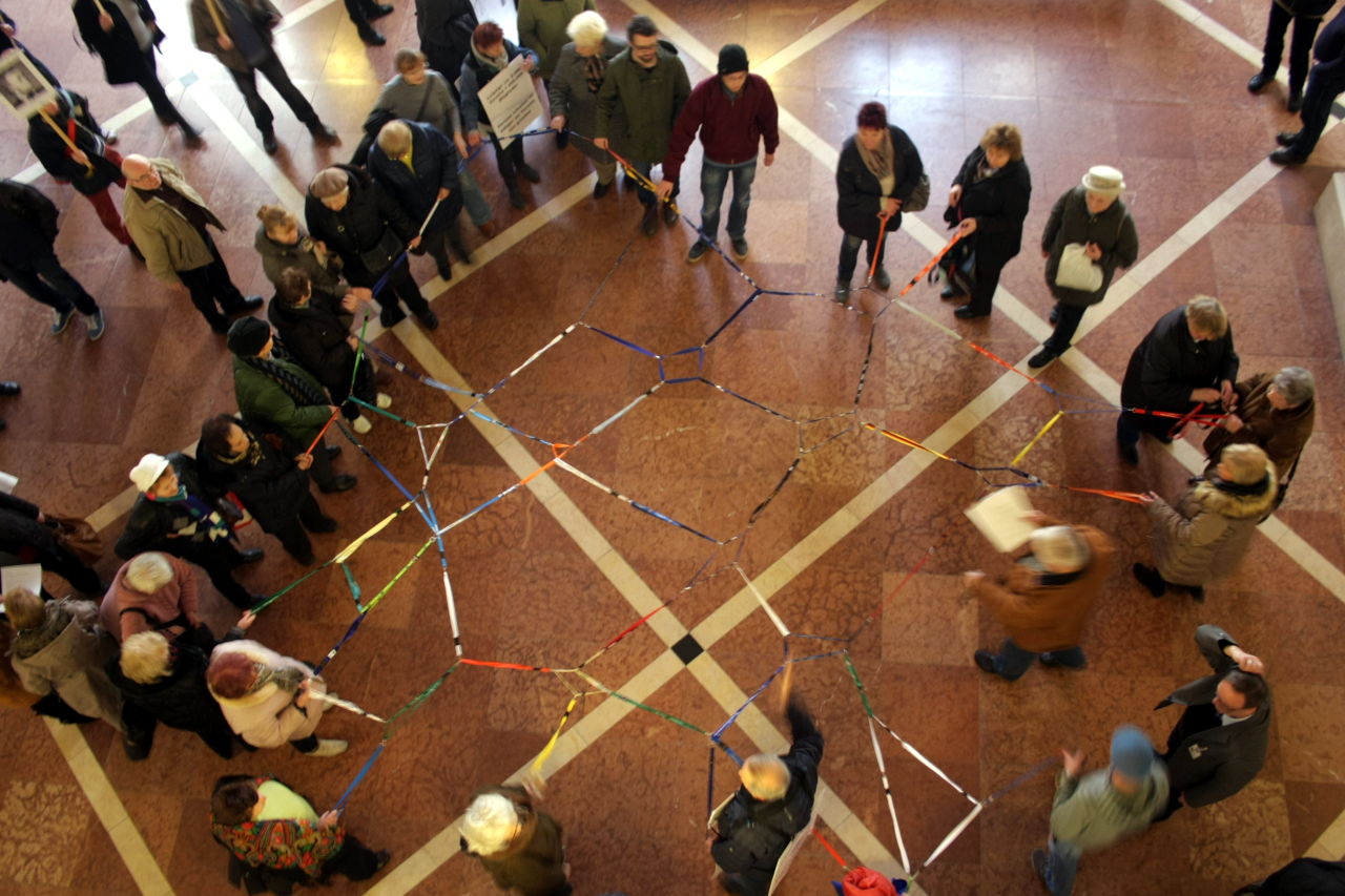 Proteste vor der Ratsversammlung haben fast schon Tradition. So voll wie am heutigen Mittwoch war die Obere Wandelhalle allerdings zu Versammlungsterminen selten. TTIP-Gegner mit einer Darstellung der Justitia am Gängelband der Finanzwelt, ein Netzwerk von Vereinen aus verschiedenen Bereichen, die Cinémathéque wegen der Weiternutzung der ehemaligen Skala, oder das Netzwerk Ess-Klasse, sie alle bauten sich auf, um die Aufmerksamkeit der Kommunalpolitiker noch einmal punktgenau zu erreichen. Auch Bürgerrechtler, die sich um die Diskussionen in der Volkshochschule bemüht hatten, überreichten Empfehlungen.