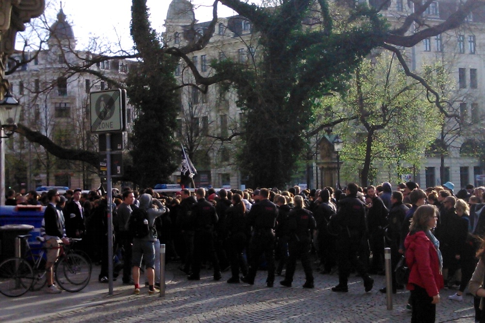 Die Polizei konzentriert sich weiter am Martin-Luther-Ring auf der Höhe Thomaskirche und Gottschedstraße. Hier sind mittlerweile Reiterstaffeln und einige Hundertschaften eingetroffen. Immer mehr Beamte bewegen sich mittlerweile auch auf der Gottschedstraße. Auch die Einsatzkräfte scheinen hier das Eintreffend er Gegendemonstranten zu erwarten.