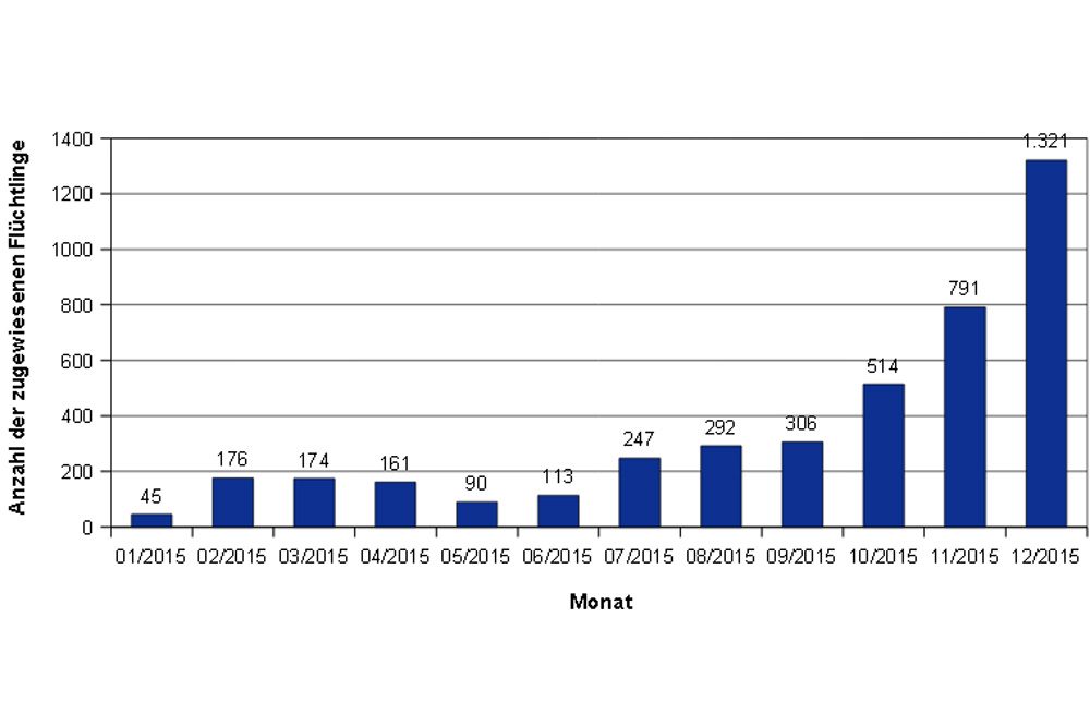 Die meisten Asylsuchenden in Leipzig kommen übrigens direkt aus den Ländern, in denen aktuell ein Bürgerkrieg tobt: Aus Syrien kamen fast 1.600 Asylsuchende, aus Afghanistan über 600, aus dem Irak fast 500. Und auch wenn im Dezember mit 1.321 Aufgenommenen ein neuer Spitzenwert erreicht wurde, heißt das nicht, dass es 2016 so weitergeht. “Die Verteilplanung der Landesdirektion Sachsen vom 08.01.2016 sieht eine Zuweisung von 391 Personen für Januar vor. Ab der 5. Kalenderwoche ist zunächst mit einer Zuweisung von 134 Personen pro Woche nach Leipzig zu rechnen.” Also rund 500 pro Monat.