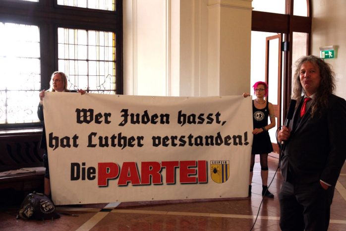 Sollte eine zentrale Straße in Leipzig nach einer Person benannt sein, die Juden als „Plage“ ohne „menschliches Herz“ bezeichnete, sie versklaven oder vertreiben lassen wollte und mit seinen Schriften eine vermeintliche Legitimation für die Verbrechen der Nationalsozialisten schaffte? Thomas „Kuno“ Kumbernuß, der Leipziger Vorsitzende der „PARTEI“, hat diese Frage klar mit „Nein“ beantwortet und vorgeschlagen, den Martin-Luther-Ring nach dem Bundesvorsitzenden der „PARTEI“, Martin Sonneborn, zu benennen.