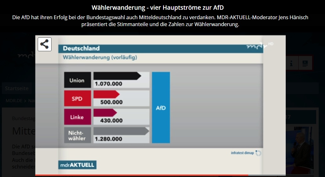 Stattdessen gab es warme Worte. Auch denen wollten viele Sachsen nicht glauben, sie haben den „Denkzettel“ ausgepackt, der vor allem von Ohnmacht zeugt. Die Wählerwanderung zeigt im Übrigen, woher diese rührt: Die neuen AfD-Wähler kommen von der CDU (nach der Wende 89 als selbsternannter Garant für Stasifreiheit und einem neuen Anfang praktisch gesetzt) und von den Nichtwählern.