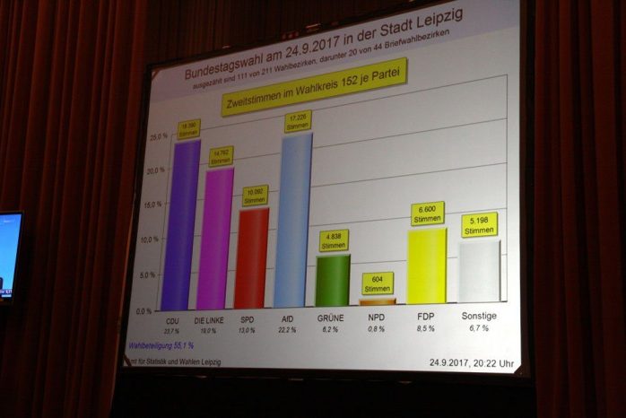 +++17:30 Uhr+++ Noch sind die Wahllokale eine halbe Stunde geöffnet. Doch schon jetzt zeichnet sich ab, dass der Bundestagswahlkampf – zumindest in Leipzig – nicht langweilig gewesen sein kann. Schon um 16 Uhr lag die Wahlbeteiligung in Leipzig mit 67 Prozent um 8 Prozentpunkte höher als im Jahr 2013. Und das liegt nicht nur daran, dass diesmal eine rechtsradikale Partei auf dem Weg ist, in den Bundestag einzuziehen.