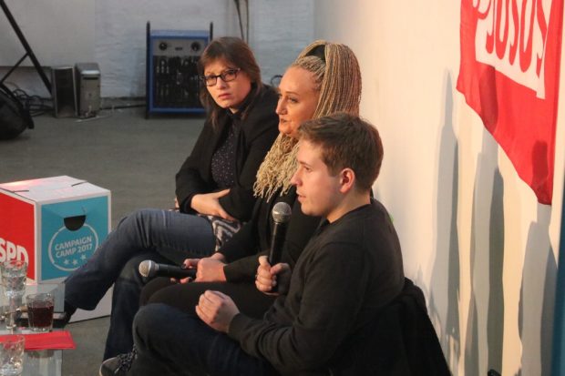 Mit Katja Pähle hatte Kühnert eine GroKo-Befürworterin gegenüber, die immerhin die SPD-Fraktionsvorsitzende im Landtag von Sachsen-Anhalt und zudem seit Dezember 2017 Mitglied im 45-köpfigen Parteivorstand ist. Die Moderation übernahm Irena Rudolph-Kokot vom linken Parteiflügel.