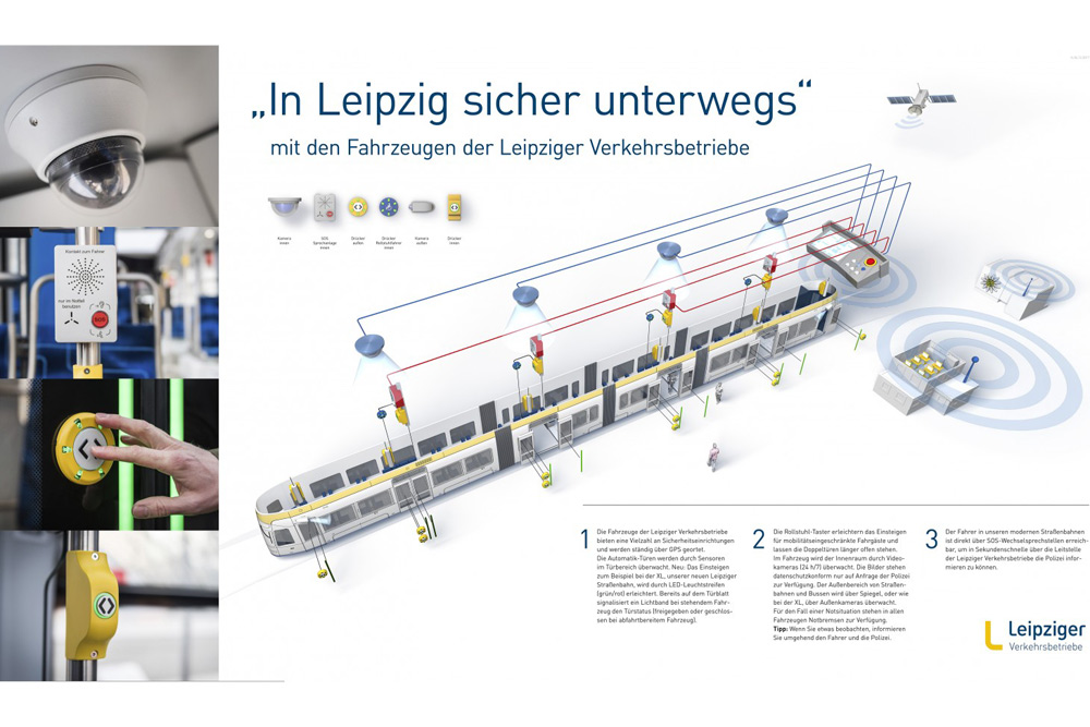 “Mit der flächendeckenden Videoüberwachung in unseren Fahrzeugen gibt es bereits bestehende und vor allem wirksame Präventivmaßnahmen. Für Fahrgäste stehen in unseren Straßenbahnen außerdem Sprechstellen zum Fahrer zur Verfügung, um schnelle Hilfe zu organisieren. Über die Leitstelle der Verkehrsbetriebe kann so in Sekundenschnelle reagiert und geholfen werden”, so Ronald Juhrs, Geschäftsführer Technik und Betrieb der Leipziger Verkehrsbetriebe.