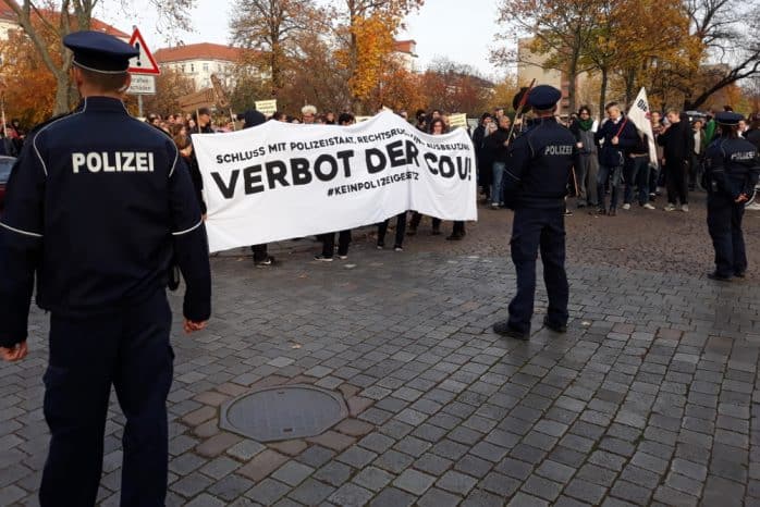 Am Ende versammelten sich die Gegendemonstranten um das kurz zuvor enthüllte „Waffen verboten“-Schild am Otto-Runki-Platz und hielten unter anderem eine Kettensäge aus Pappe daran. Als jemand einen Zettel mit der Aufschrift „Hier entsteht eine rassistische Kontrollzone“ anbringen wollte, drohte ein Polizist mit einem Ordnungswidrigkeitsverfahren. Auf Twitter kursierten am Montag bereits Spekulationen, wie lange es dauern würde, bis jemand das „Waffen verboten“-Schild entfernt oder übermalt.