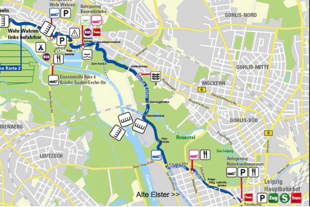 Während die Öffnung des Teilstücks zwischen Lindenauer Hafen und Elster-Saale-Kanal zum Kurs 2 gehört, der nach den Plänen der Amtsinhaber in der Region einmal bis zur Saale führen soll (ein Thema, das wir noch einmal extra behandeln müssen), gehören Stadthafen und Alte Elster sowie Elstermühlgraben zum Kurs 3 im WTNK: von Leipzig über die Weiße Elster zur Saale. Der geplante Stadthafen (den die Stadt ursprünglich aus Kostengründen gar nicht selbst bauen wollte) liegt direkt an der geplanten Abzweigung der neuen Alten Elster vom jetzigen Elstermühlgraben.