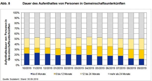Aber sie wechseln großenteils dann in die Obhut des Jobcenters, wo sie dann oft erst wieder in Sprach- und Umschulungskursen landen. Der Weg in den hiesigen Arbeitsmarkt dauert ziemlich lang. Entsprechend stiegen die Zahlen von Geflüchteten in ALG II von 9.789 im Oktober 2018 auf 9.992 im Juni 2019.