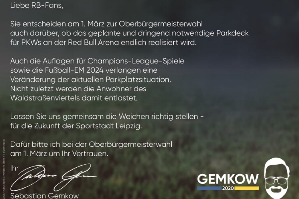 Wenn man in Leipzig eines als sicher annehmen kann, dann ist es, dass es eine grundlegende Fußball-Euphorie gibt. Die ja gern auch politisch genutzt wird. In diesem Fall vom „Team Gemkow“, welches sich in internen Mails auf das Bundesligaspiel am heutigen Samstag von RB Leipzig gegen Werder Bremen freut. Denn das gäbe ihr die „Gelegenheit, mit beiliegender Karte vor dem Stadion ab 14 Uhr die RB-Fans konkret auf die Gefahren hinzuweisen, die aus der Unterstützung von Linken und Grünen für den Kandidaten B. Jung zum Tragen kommen.“ Es geht um einen Parkplatz, der als Tiefgarage entstehen soll. Und eine CDU im Flyermodus.