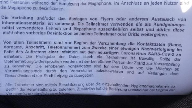 Was „Leipzig nimmt Platz“ nicht wollte und weshalb die Demo abgesagt wurde, hat die PARTEI heute anders für sich entschieden. Die Teilnehmerliste wurde zwar ausgefüllt, befindet sich jedoch in den Händen des Veranstalters. Laut der der L-IZ.de vorliegenden Beauflagung muss diese erst dann ausgehändigt werden, wenn binnen der kommenden vier Wochen ein Ersuchen vom Ordnungsamt dazu folgt. Dieses muss dann mit einer Begründung aufwarten, dass ein Verdacht auf eine Infektion auf und während der Demonstration oder einer anwesenden Person vorliegt – so die Theorie.