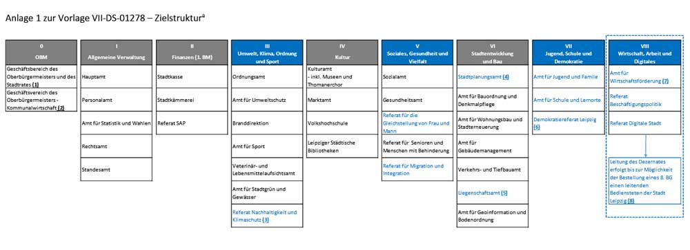 Punkt 1: „Die Ratsversammlung bestätigt die Zielstruktur für acht Geschäftskreise der Beigeordneten nach Anlage 1.“