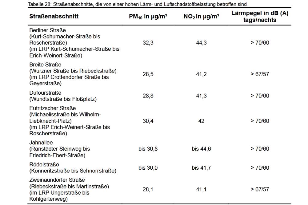 Aber davon kann in Leipzig keine Rede sein. Der Lärmaktionsplan ist zwar vollgestopft mit lauter (Straßenbau-)Vorhaben, mit denen der Lärmpegel punktuell gesenkt werden soll. Aber das war auch schon im ersten Lärmaktionsplan von 2012 so. Geändert hat sich fast gar nichts. Die Stadt ist noch genauso lärmbelastet wie vor acht Jahren.