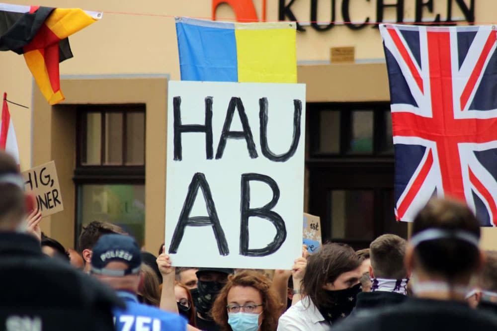 Grimma in Aufruhr: Björn Höcke und Anhänger/-innen versammelten sich heute auf dem Grimmaer Marktplatz. Die Veranstaltung unter dem Motto „Freiheit statt Klimasozialismus“ war Anfang August angemeldet worden, kurze Zeit später wurden Protestaufrufe bekannt. Ursprünglich hatte sich auch Andreas Kalbitz, ehemaliger Landesvorsitzender der AfD Brandenburg, angekündigt, seine Teilnahme aber wenige Tage vorher abgesagt.