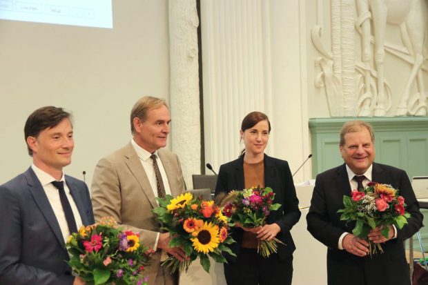 Zu Beginn der Ratsversammlung standen Heiko Rosenthal (Linke) für Umwelt, Ordnung, Sport und Klima, Thomas Fabian (SPD) für Soziales, Gesundheit und Vielfalt sowie Vicki Felthaus (B90/Die Grünen) für Jugend, Schule und Demokratie zur Wahl. Zweimal Zeugnisvergabe und einmal die Größe des Vertrauensvorschusses also in der heutigen Ratsversammlung, die damit den Umbau der Verwaltungsspitze auch personell absegnen soll.