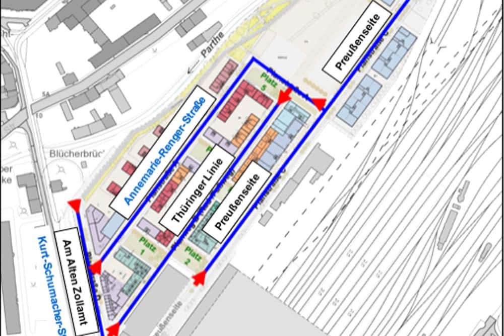 Und Ärger wird es auch mit dem Beharren der Verwaltung darauf geben, die Straßen auf der Westseite des Hauptbahnhofs kunterbunt durcheinander zu benennen: „Am Alten Zollamt, Thüringer Linie, Preußenseite, Annemarie-Renger-Straße“.