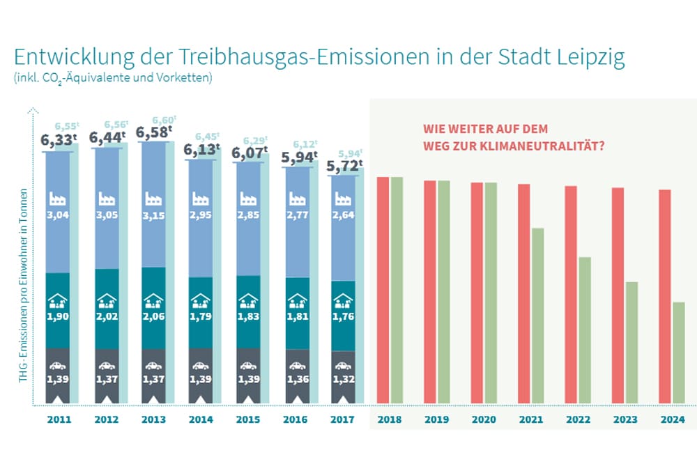 Noch ein Zitat von 2014: „Aber hier steckt ein ganz ehrgeiziges Ziel: Von den 2,26 Tonnen CO2, die der Verkehr in Leipzig jedes Jahr pro Nase erzeugt, will die Stadt bis 2020 auf 0,95 Tonnen runter. Das wäre eine kleine Revolution, die mit sparsamen Autos nicht zu schaffen ist. Das wäre ein anderes Mobilitätsdenken.“