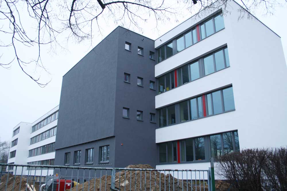 Für den Südgiebel des Erweiterungsneubaus an der Johannes-Kepler-Schule ist eine Fassadenbegrünung vorgesehen. Das Gebäude ist fertiggestellt und die Unterkonstruktion ist bereits montiert. Eine Bepflanzung erfolgt in Kürze.