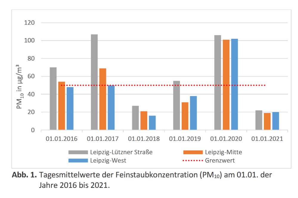 „Allerdings ist auch zu berücksichtigen, dass die gemessene PM10-Konzentrationen jeweils von der Intensität und Dauer des Abbrennens von Pyrotechnik in unmittelbarer Nähe zur Messstation maßgeblich beeinflusst wird. Derartige Informationen liegen i. d. R. nicht vor, wären aber zur weiteren Interpretation hilfreich und könnten Aufschluss darüber geben, warum bspw. an der Messstation Leipzig – Lützner Straße der PM10-Stundenmittelwert am 01.01.2018 um 02:00 Uhr geringer ist, als der zeitgleiche Wert am 01.01.2021“, so das Umweltdezernat. Denn in der Lützner Straße wird ja eher das „Normalfeuerwerk“ der Leipziger in ihrem Wohngebiet gemessen.