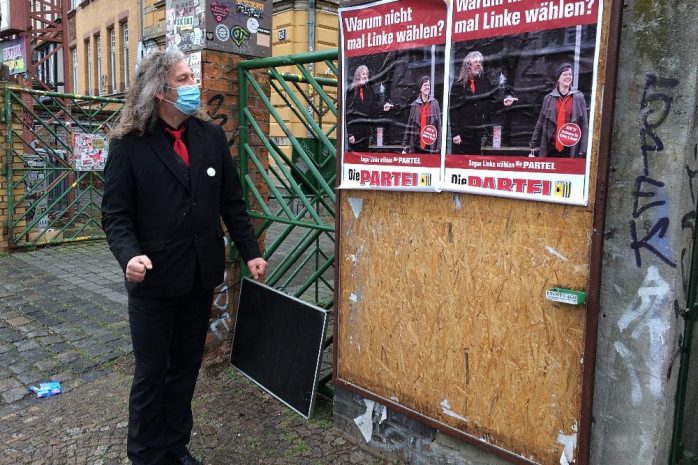 Zumal da noch eine PARTEI in Leipzig existiert, die es sich heute morgen am Werk 2 nicht nehmen ließ, gewohnt frech mit dem Spruch „Warum nicht mal Linke wählen?“ bei der Linken am Eingang für sich zu werben.