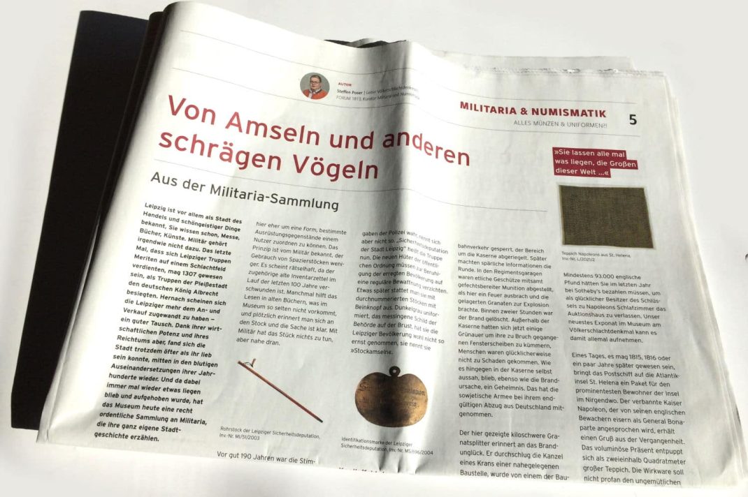 Denn wer sich auch nur ein bisschen in Geschichte auskennt, der weiß, dass Aufrüstungen keine Konflikte lösen. Im Gegenteil. Das hat schon einmal auch in Leipzig zu einer drastischen Reform der (Stadt-)Polizei geführt. Davon erzählt ein Artikel, den Steffen Poser in der neuen Museumszeitung „MuZe“ des Stadtgeschichtlichen Museums zu einigen besonderen Exponaten aus der Militaria-Sammlung geschrieben hat.