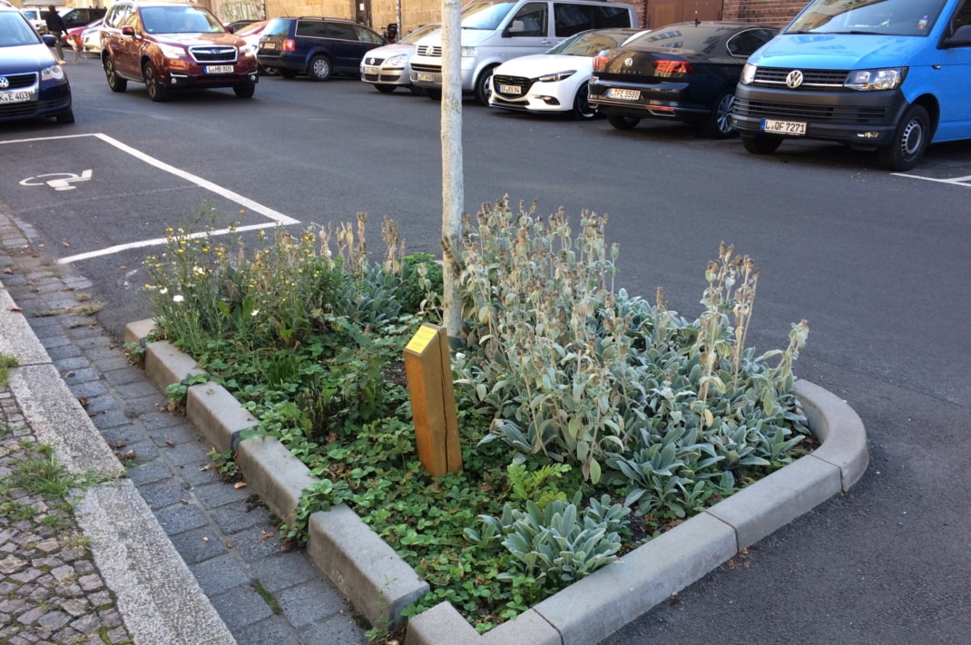 So wurden in der Junghanßstraße elf Bäume im sogenannten „Zwickauer Modell“ in die Fahrbahn neu integriert. Dabei unterteilen die gepflanzten Bäume das Parkraster und führen zu einer Belebung und Aufwertung der Straßenabschnitte.