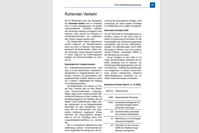Die Angaben zum „Geschäftsbericht 2020“ stimmen so auch nicht ganz. Dort muss es heißen: Seite 53 ff. Wobei das Jahr 2020 dadurch gekennzeichnet war, dass das Ordnungsamt endlich ein anderes Thema systematisch anpackte, das davor jahrelang scheinbar unlösbar schien: das Parken auf Radwegen.