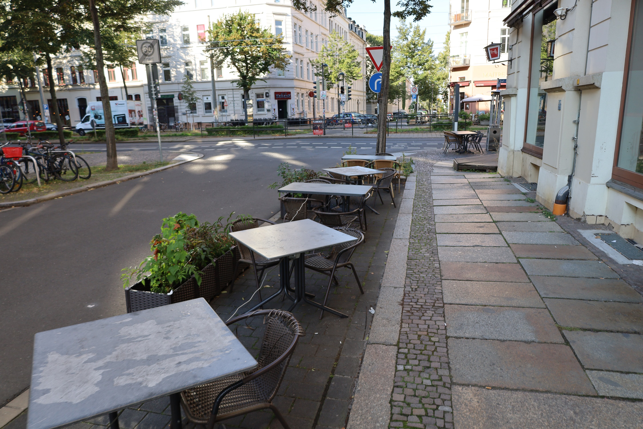 Was natürlich all die Leute wundern dürfte, die jetzt schon Gehwege nach Sondernutzungssatzung in Anspruch nehmen, vor allem eben Gastwirte auf der KarLi, in der Gottschedstraße und so weiter. Sie können sich gar nicht leisten, dass die Freisitze dann vermüllen. Und so lange das Wetter sonnig ist, sind die Freisitze voll. Die Leipziger wollen ja gar nicht immer in ihrer Wohnung herumhängen, wenn das Wetter schön ist. Und große Gärten haben die meisten gar nicht.